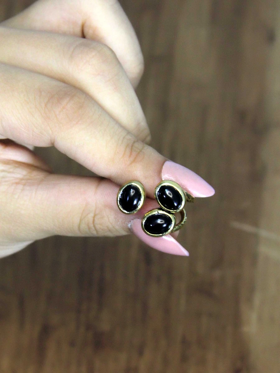 Doğal Taş Oniks Üçlü Doğal Taşlı Antik Model Kadın Ayarlanabillir Yüzük Euy76o Siyah