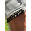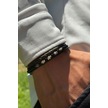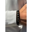 Doğal Taşlı Örgü Desen El İşçiliği İle Üretilmiş Hakiki Deri Erkek Bileklik Siyah