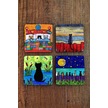 Doğaltaş Bardak Altlığı 4'lü Set - 10x10x1 Kedi Baskılı - Stone Coasters Çok Renkli