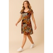 Dökümlü Rahat Kalıp Günlük Penye Kumaş Elbise Kahverengi