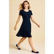 Dökümlü Rahat Kalıp Günlük Penye Kumaş Elbise Lacivert