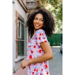 Dökümlü Rahat Kalıp Günlük Penye Kumaş Elbise-mercan Mercan