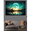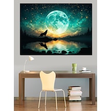 Dolunay Manzarasında Uluyan Kurt Dekoratif Kanvas - Mdf Ahşap Tablo