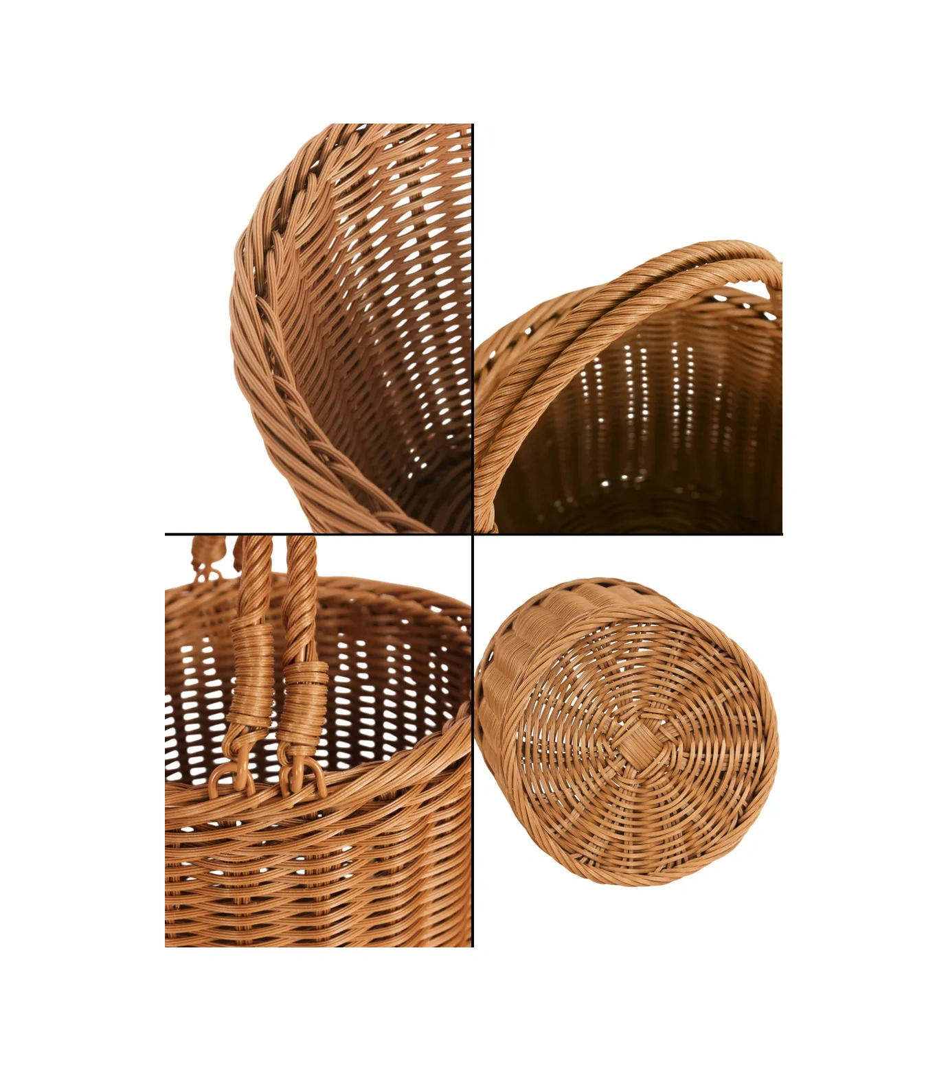 Siyah Püsküllü Small Boy Katlanabilir Hasır Sepet / Saksılık 25x2