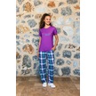 Leopar Ve Çiçek Desenli Pamuklu Penye Kumaş Pijama Takımı Ekru