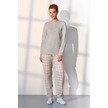 Doreanse Kadın Pembe Ekoseli Gri T-shirt Pijama Takımı 25k4043-standart Pembe