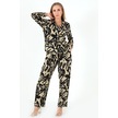 Doremi Base Desenli Uzun Kollu Kadın Pijama Takım Siyah