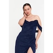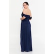 Doridorca Kadın Büyük Beden Düşük Kollu Uzun Abiye Elbise 6149 Lacivert Lacivert