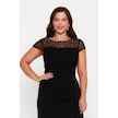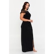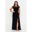 Doridorca Kadın Büyük Beden Taş Süslemeli Derin Yırtmaçlı Maxi Abiye Elbise 7048 Siyah Siyah