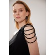 Doridorca Kadın Büyük Beden Tek Omuz Ve Omzu Taş Detaylı Uzun Abiye Elbise 6053 Siyah