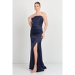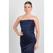 Doridorca Kadın Straplez Drapeli Saten Maxi Abiye Elbise 7051 Lacivert Lacivert