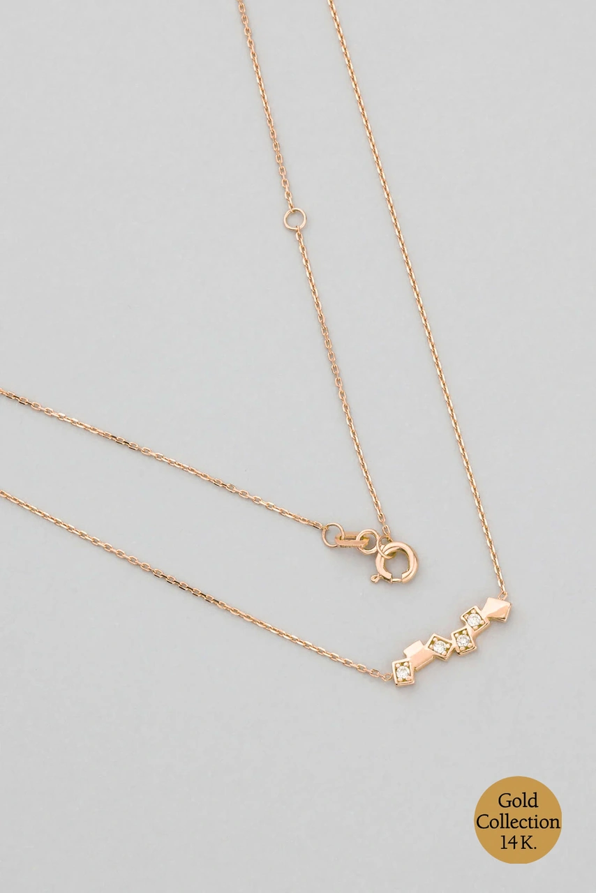 Dörtgen Figürlü 14 Ayar Rose Altın Kolye