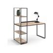 Dou Metal Raflı Masif Panel Doğal Ahşap Çalışma Masası Siyah