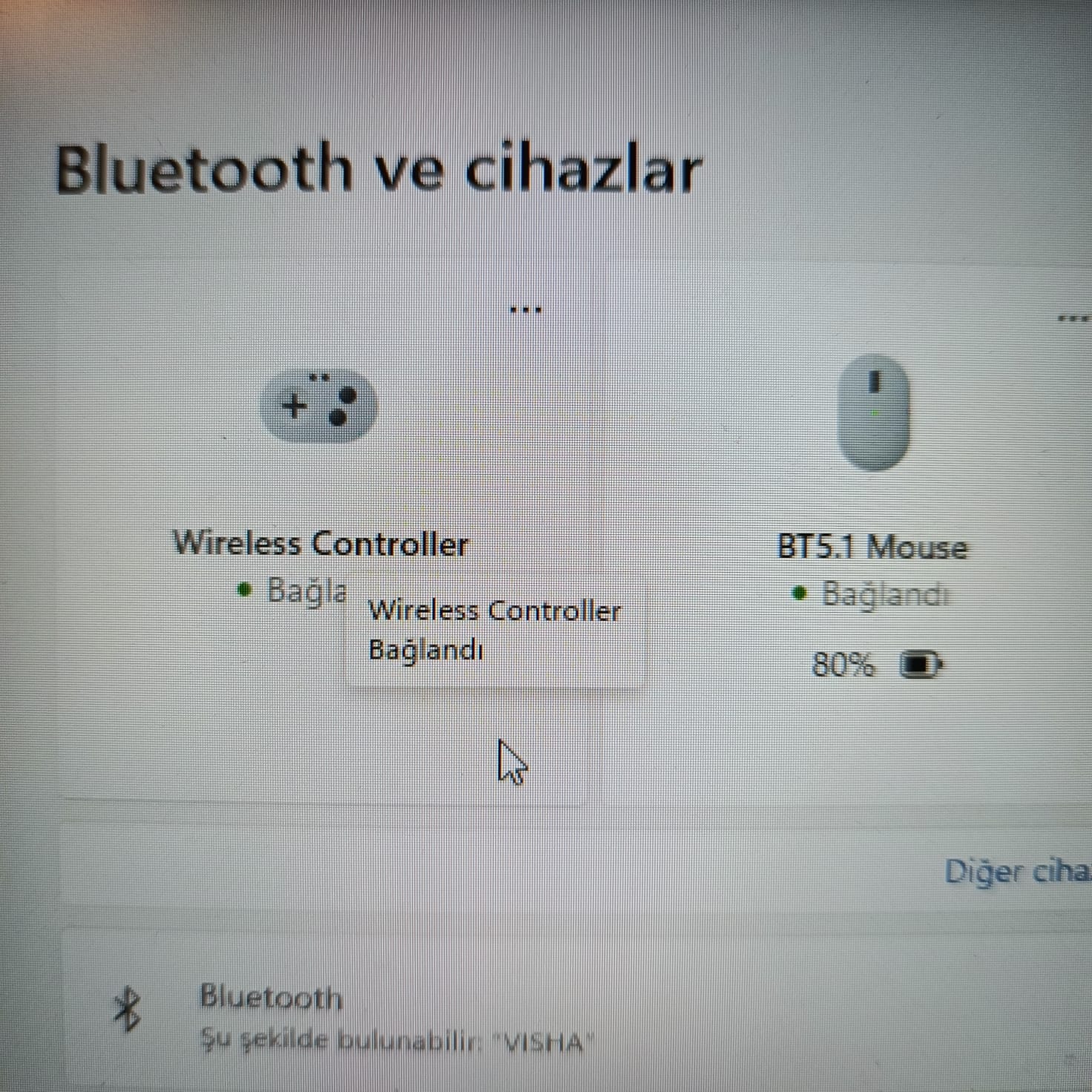 bilgisayar da çalışıyor bluetooth açmak için ortadaki tuş ve share tuşuna 10 sn basılı tutmanız lazım bilgisayarda, wiereless controller adında çıkıyor. Çok güzel ürün titreşim, Touchpad, her şeyi çalışıyor. Bir tane daha aldım.