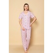 Dreamy Pamuklu Kalp Desenli Kısa Kollu Düğmeli Gömlek Pijama Takımı Pembe