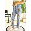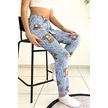 Dreamy Soft Kadife Dokulu Ayıcık Desenli Süet Pijama Altı Pantolon Mavi