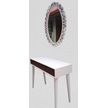 Dresuar Ahşap Kayın Retro Ayak Çift Çekmece Motifli Ayna Beyaz Ceviz El Yapımı Beyaz