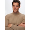 Ds Damat Slim Fit Bej Fitilli Pamuk Karışımlı Yarım Balıkçı Dar Kesim Vücudu Saran Triko Kazak 5HF06ORT64100 Bej