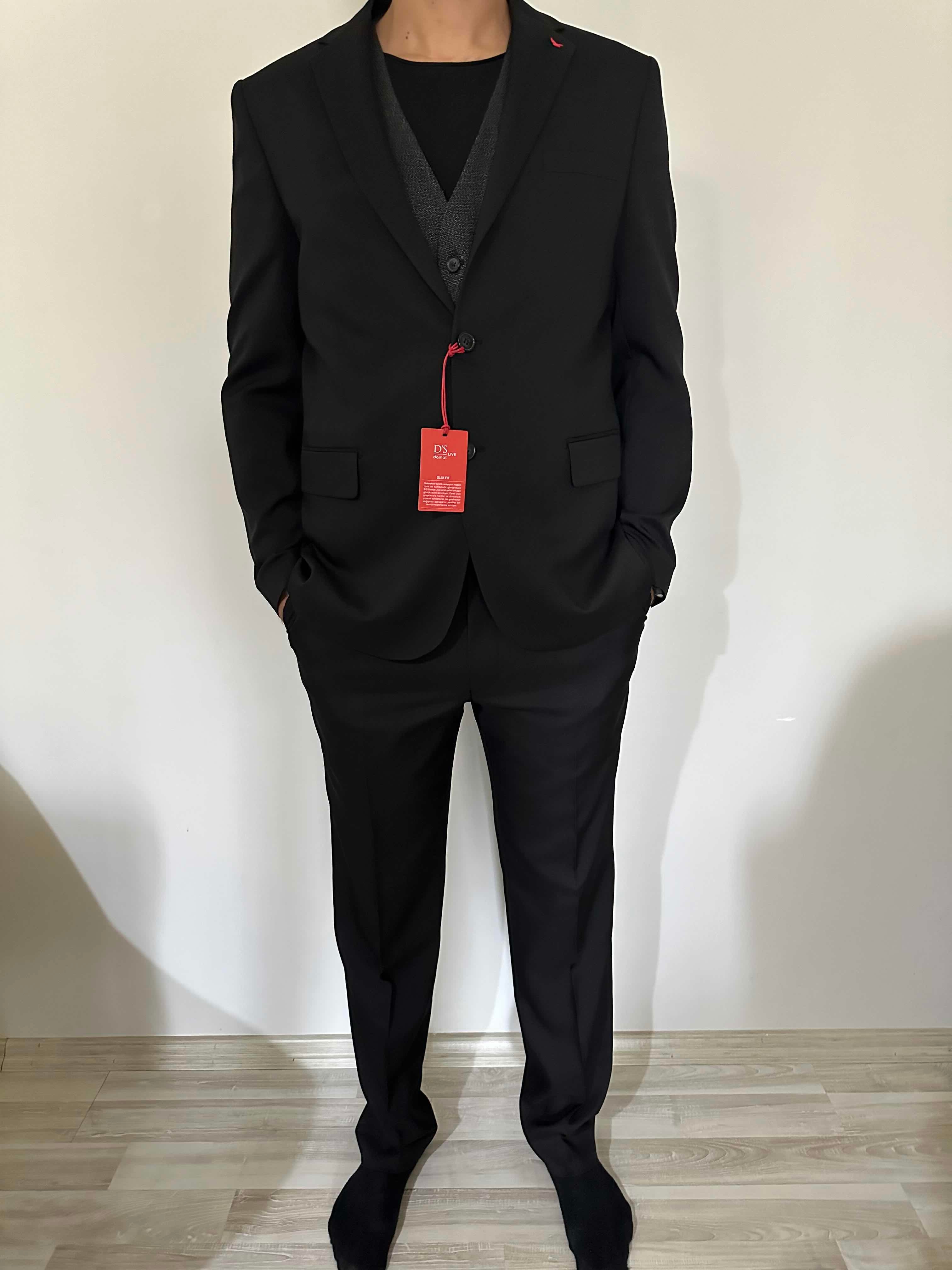 Ds Damat Slim Fit Siyah Düz Mono Yaka Tek Yırtmaçlı Astarlı Takim Elbise Kombinli 8HFY5ORTKMBN2 Siyah