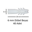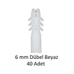 Dübel, 6 Mm Beyaz Dübel, 40 Adet