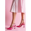 Duck Fuşya Saten Yanları Açık Topuklu Ayakkabı