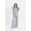 Kadın İspanyol Paça Pantolon Uzun Kollu Parmak Geçirmeli Crop Takım Gri