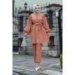 Tesettür İkili Takım Uzun Tunik Bol Paça Pantolon 4006-kahve Kahverengi
