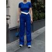 Düğme Yakalı Saks Alt Üst Takım S3943 Saks