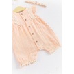 Düğmeli Bandanalı Kız Bebek Müslin Tulum Somon