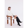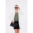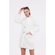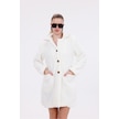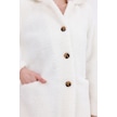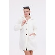 Düğmeli Cepli Kadın Peluş Kaban Beyaz