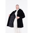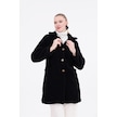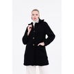 Düğmeli Cepli Kadın Peluş Kaban Siyah