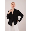 Düğmeli Ve Çizgi Detaylı Siyah Gömlek Siyah