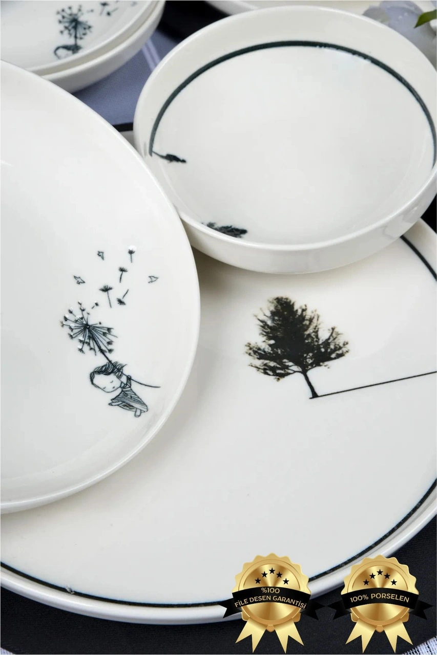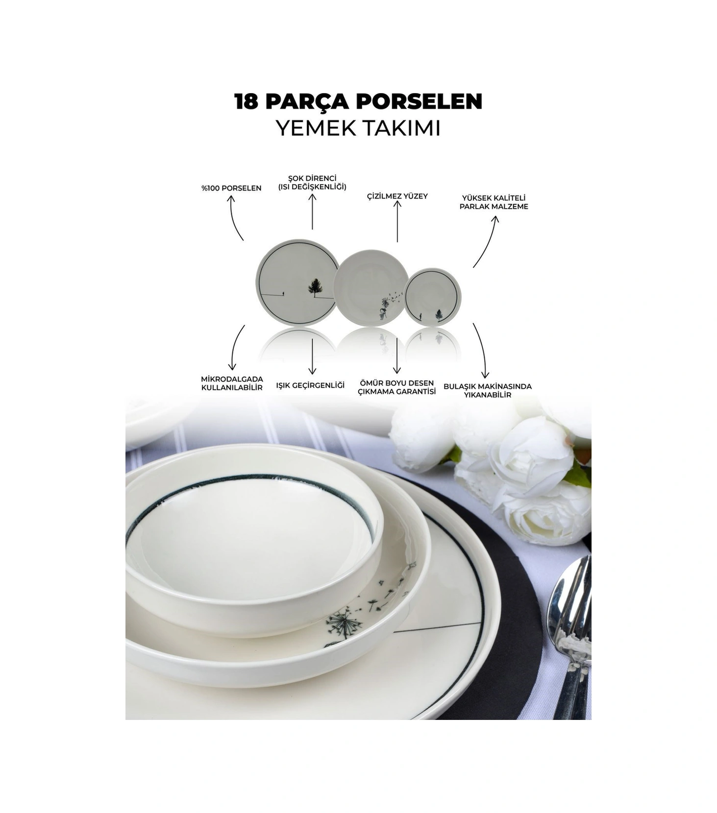 Düğüm 18 Parça 6 Kişilik Porselen Yemek Takımı Çok Renkli