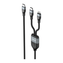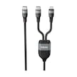 Duo Power 100W Çift Uçlu Type-C To Lightning + Type-C Şarj Kablosu Örgü Tasarım 1.2 Metre Siyah