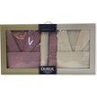 Durul Kadife Jakarlı Aile Bornoz Seti / Gül Kurusu - Krem