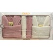 Durul Kadife Jakarlı Pamuklu 8 Parça Aile Bornoz Seti Pudra
