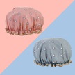 Duş Başlığı Şapka Çift Katmanlı Ev Banyo Aksesuarları Elastik Yeniden Kullanılabilir Banyo Yetişkin Sevimli Kedi Baskılı Karikatür Mavi