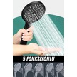 Duş Başlığı Yüksek Tazyikli Tasarruflu Banyo El Ayak Duşu Siyah Ultra Lüks 5 Fonksiyonlu Ayarlanabilir Dayanıklı Çok Renkli