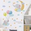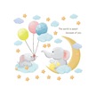 Duvar Çıkartmaları Seti, Filler, Ay, Bulutlar, Yıldızlar, Balonlar Duvar Çok Renkli
