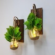 Duvar Dekoru, Led Işıklı, Deve Tabanı Çiçekli, Ceviz Aplik İkili Set