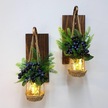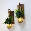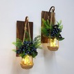 Duvar Dekoru, Led Işıklı, Mavi Kokina Çiçekli, Ceviz Aplik İkili Set