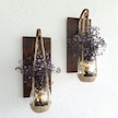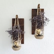 Duvar Dekoru, Led Işıklı, Mor Cipso Çiçekli Aplik, Ceviz Ikili