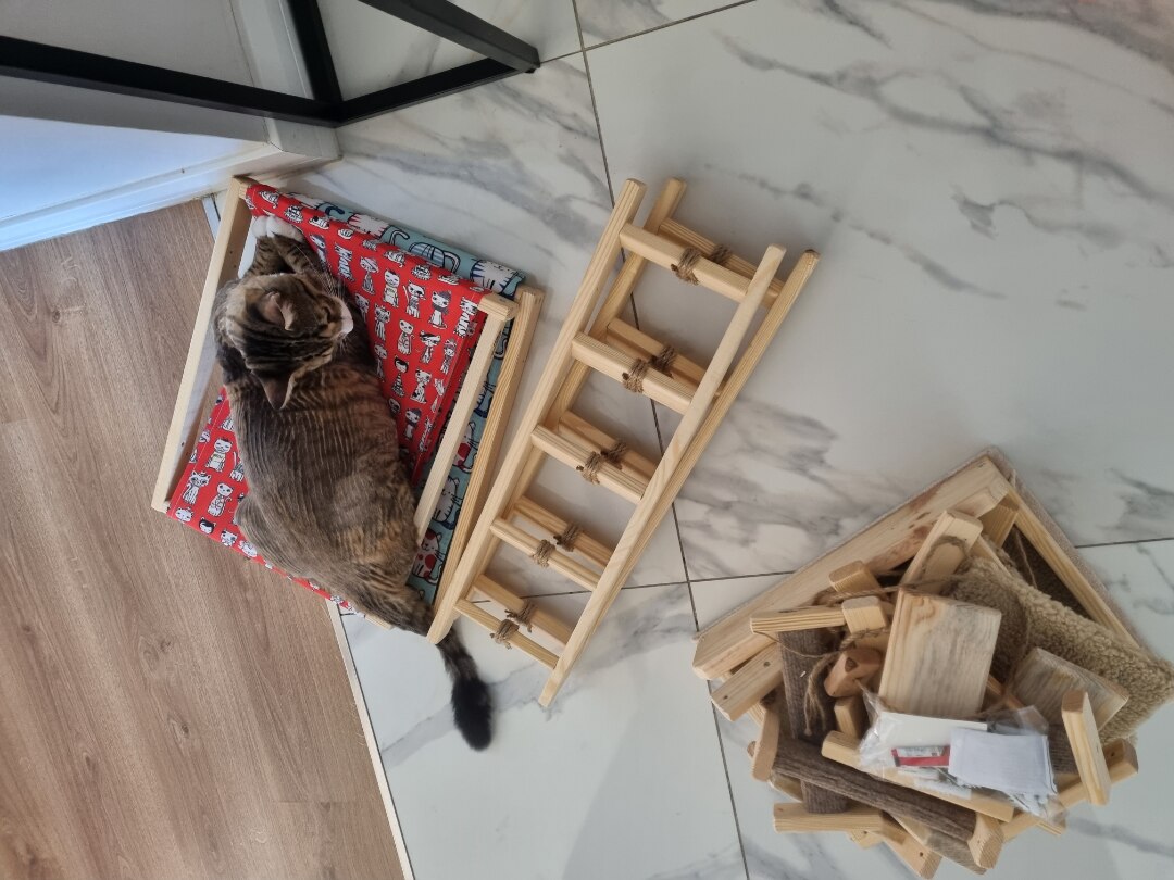 Duvara monte kedi hamağı ve kedi merdiveni takımı (Mavi)