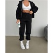 Düz Basic Hırka Eşofman Altı Jogger Alt Üst Takım - Siyah Fermuarlı Oversize Kapüşonlu Siyah