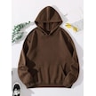 Düz Basic Sweatshirt - Kahverengi Oversize Kapüşonlu Kahverengi
