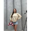 Labubu Baskılı Bisiklet Yaka Sweatshirt Taş Rengi
