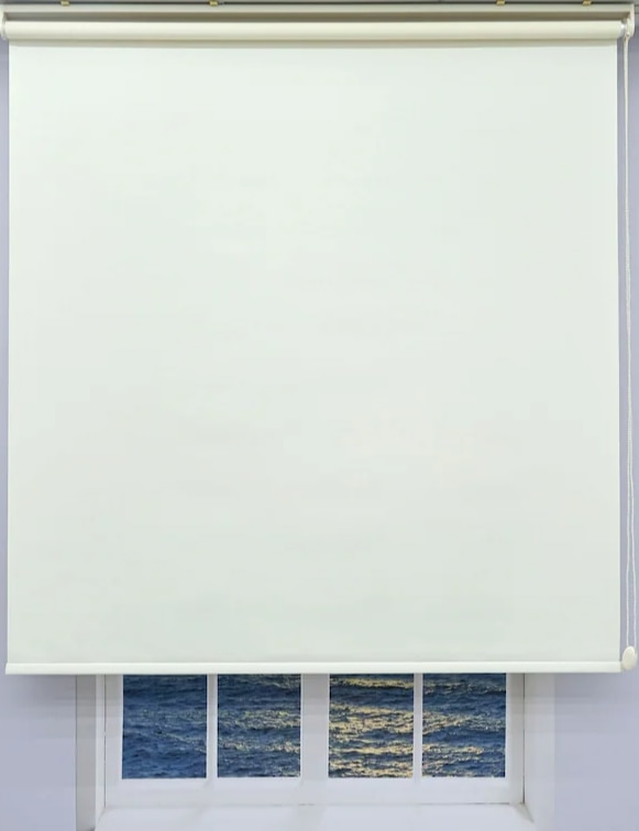 Düz Stor Perde - Kalın Mat Stor Güneşlik Kumaş Keten - Alüminyum Kasa Ve Boru - Eteği Dilimsiz/düz Krem