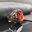 Düz Turuncu Kehribar Erkek Gümüş Yüzük Gyzgmsagumu