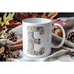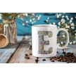 E Baş Harf Çiçek Desenleri İle Natural Tarz Kupa Bardak - Kişiye Özel Çiçekli Kahve Çay Bardak - Beyaz