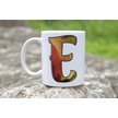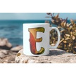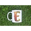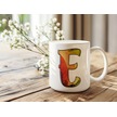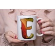 E Harf Yaprak Renkleri İle Kupa Bardak - Kişiye Özel Alfabe Harfli Bardak - Hediye Beyaz